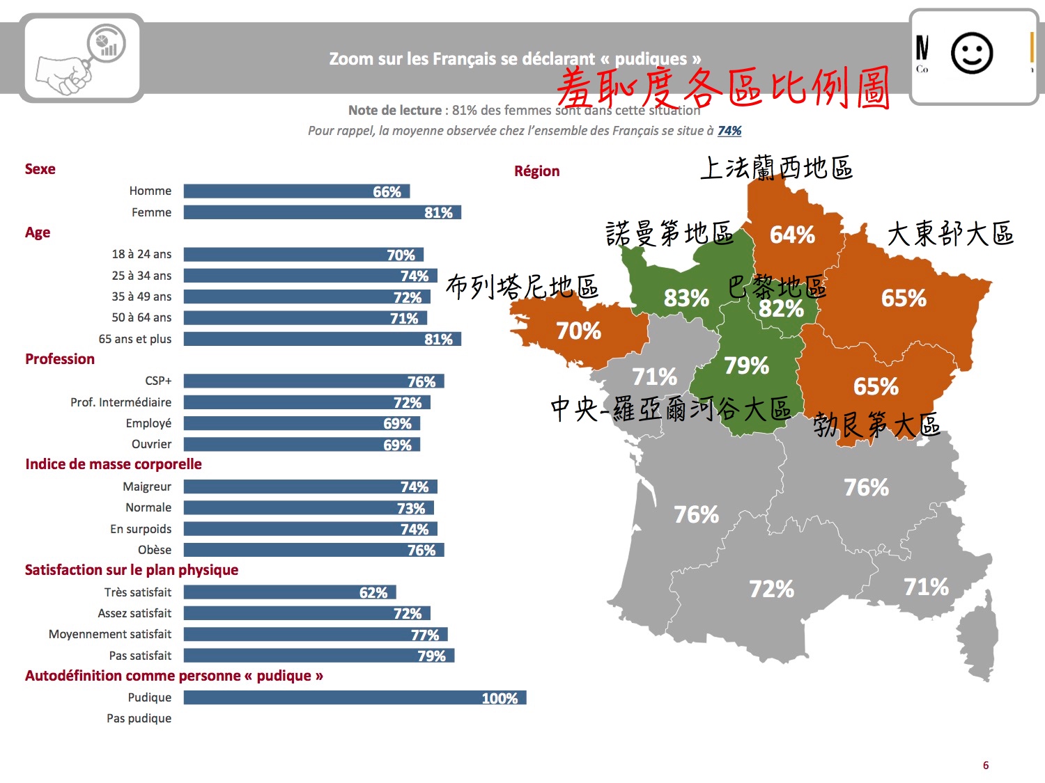 什麼!?當 C’ 看到這張表的時候,立刻,真的是秒傳給另一半看,並說:「 82% 的巴黎人很害羞!?」會如此吃驚,實在是因為太常在電視上看到不少法國人,在歡慶的時候會刻意露出大片的股溝……這張圖表一定有什麼問題……