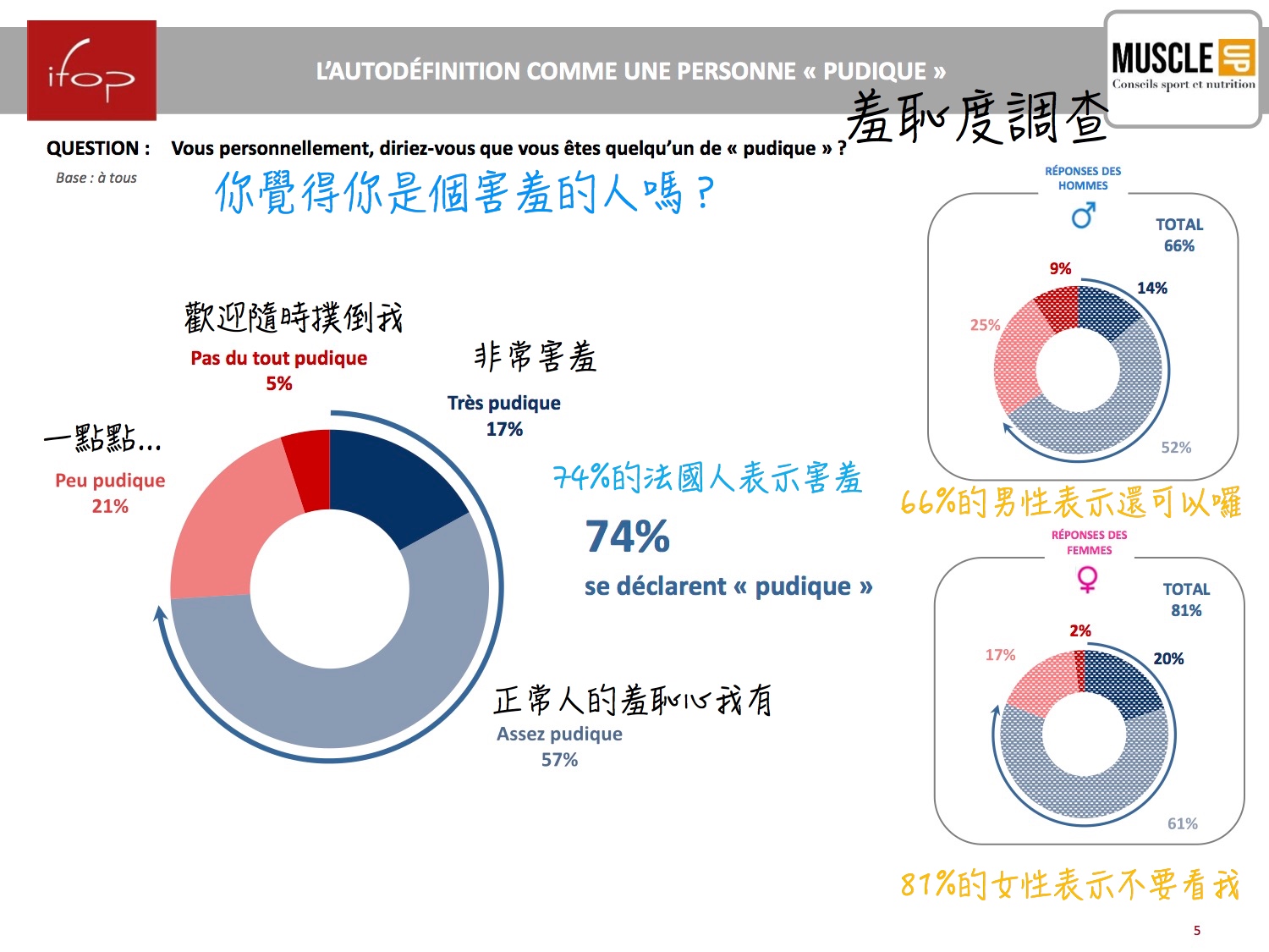 居然!有 74% 的法國人表示他們同意自己可以用此單字解釋,讓 C’ 突然發現自己對這族群誤會原來非常深……還以為「歡迎隨時撲倒我」的那一區塊,是不是跟「正常人的羞恥心我有」弄混?