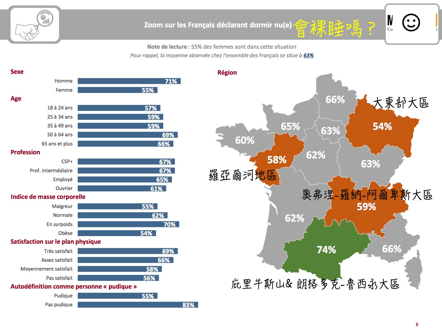 這回看到針對1000多位法國男女,對外表、羞恥度、裸睡等的研究數據,著實大開眼界,讓 C’ 帶大家一一了解。