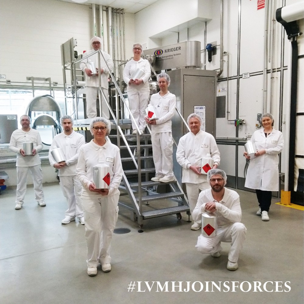 法國精品業龍頭LVMH,已經在3月中宣布,將集團旗下原本用於生產香水和化妝品的工廠,在現在物資缺乏時刻,拿來做為生產酒精乾洗手之用。這些將會優先發送給巴黎公共醫院協助系統(AP-HP)的39家醫院。之後更宣布,已經找到一家中國供應商,能提供1千萬只口罩,將在未來幾天內,交付700萬個外科口罩和300萬個FFP2口罩。此善舉預計維持四週,等同於四千萬只口罩。